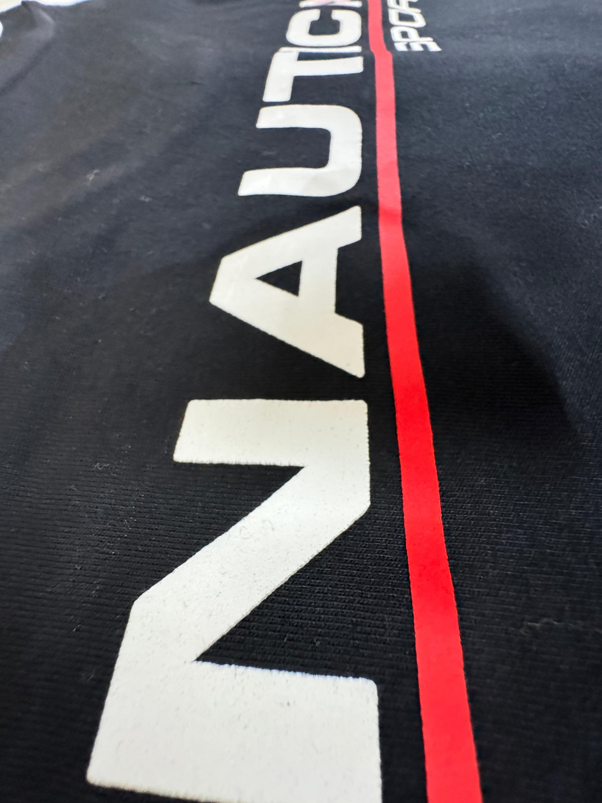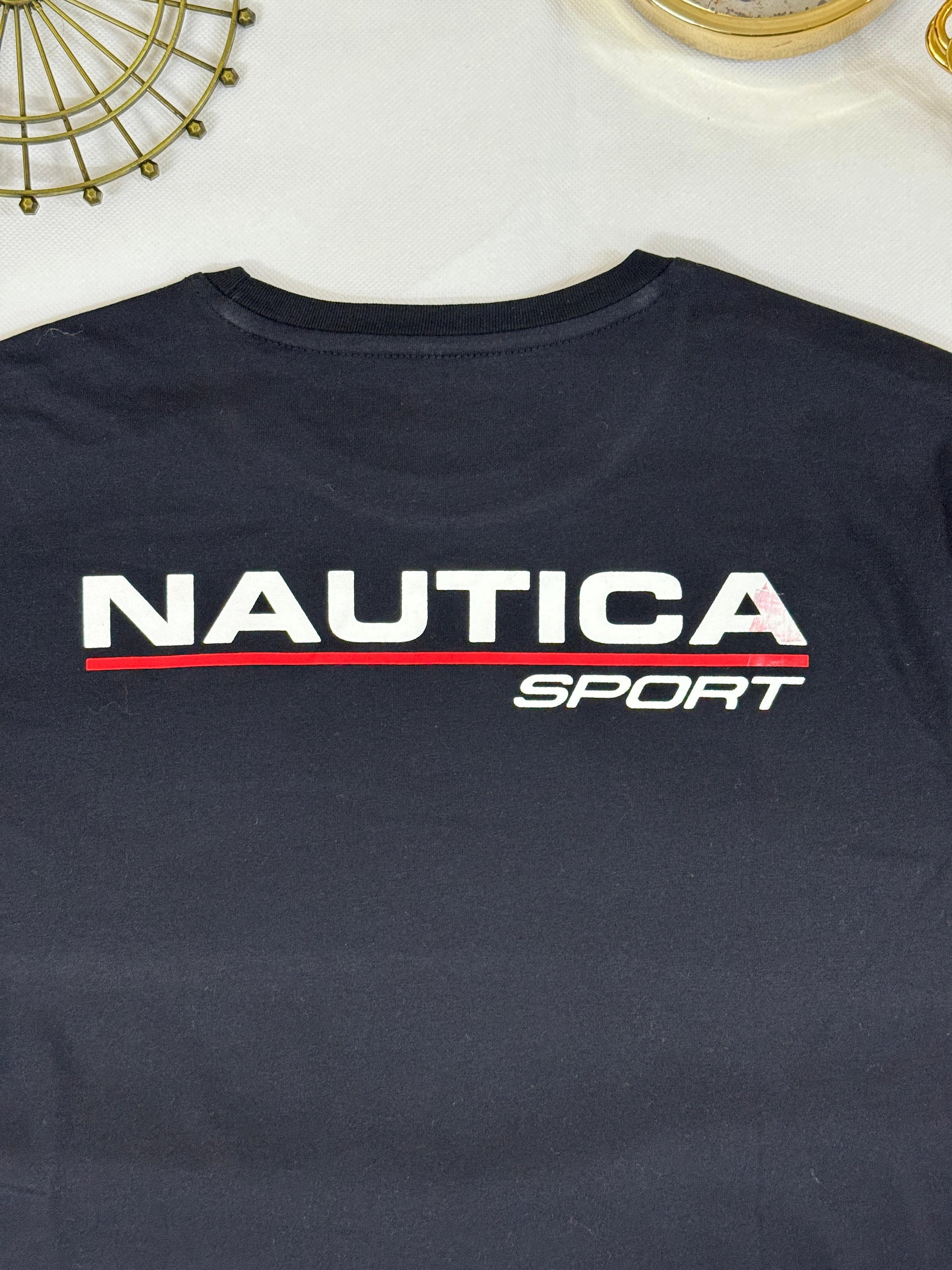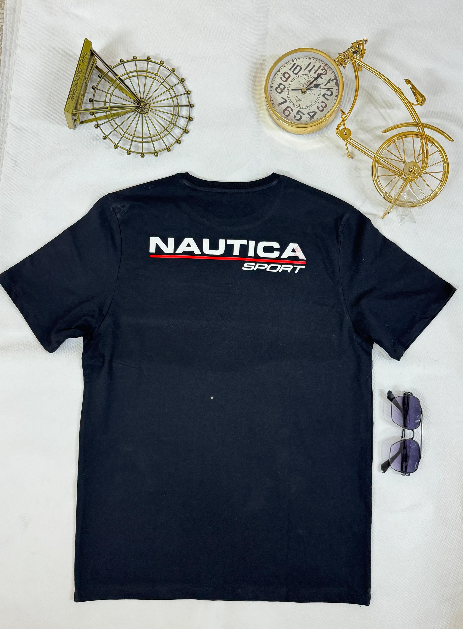 Stay ahead in style with the Nautica Sport black t-shirt, featuring a bold front graphic and a statement back logo. Crafted from soft, breathable fabric, this tee keeps you comfortable while delivering serious sporty vibes. Perfect for casual days, active outings, or when you just want to look effortlessly cool.
